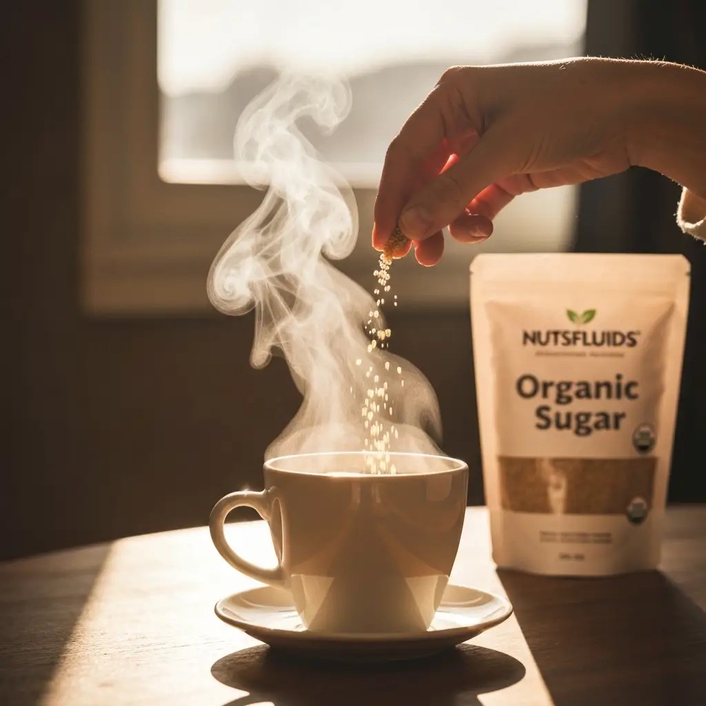 NUTSFLUIDS Organic Sugar is pure, unrefined sugarcane sugar made from certified organic farms. Stone-ground to preserve natural molasses, it offers rich caramel flavour, better nutrition, and perfect sweetness for tea, coffee, baking, and Indian recipes.